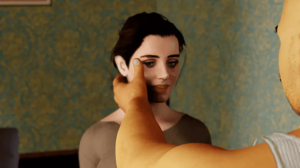- Fragile Recovery & Scraping By: Now, Eve is technically sober. She’s fighting. But recovery in a world that’s moved on is its own battle. She works a dead-end bartending job and logs onto “Shamecams” (the game’s fictional camming site) to afford her apartment and the precious, supervised visits with her son.
